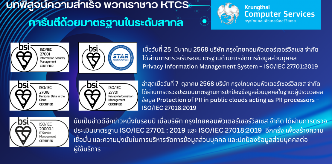 ตุลาคม 29, 2025 Posted by: ktbcsadmin Category: ข่าว ไม่มีความเห็น KTCS ผ่านการตรวจรับรองมาตรฐานระดับสากล อย่างต่อเนื่อง Company presentationhow can we help you? Contact us at the Consulting WP office nearest to you or submit a business inquiry online. contacts