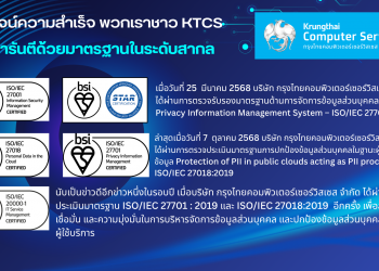 KTCS ผ่านการรับรองมาตรฐานใหม่ Privacy Information Management System (Cloud Service) ขยายขอบเขตการรับรอง ISO27001 Information Security ไปยัง VAYU XTREME & CSOCบริษัท กรุงไทยคอมพิวเตอร์เซอร์วิสเซส จำกัด (KTCS) ได้ผ่ เมษายน 8, 2025